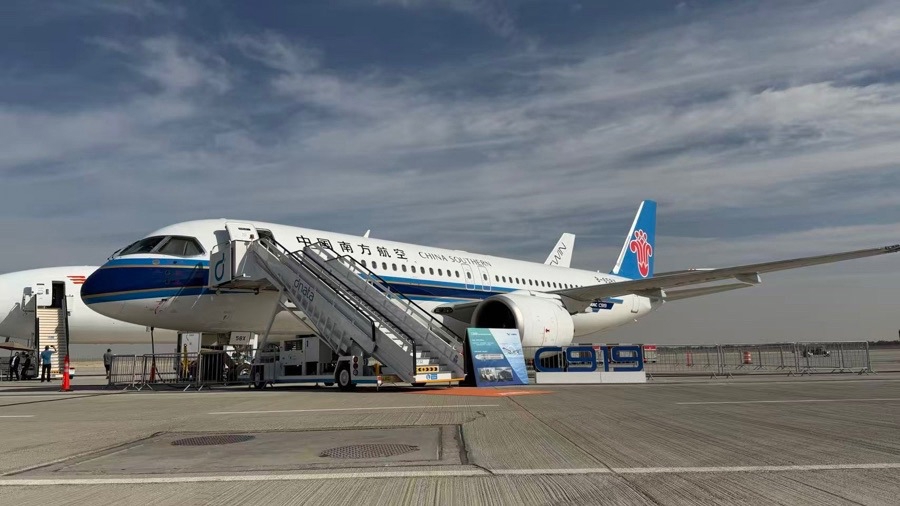 自2024年8月28日接收首架C919飞机以来,南航已运营该机型超过一年,目前机队规模7架。本次亮相迪拜航展的是南航于2025年9月28日接收的第6架C919飞机。截至目前,南航C919共计执飞过17个航点,安全飞行超过10000小时,累计承运旅客超62.7万人次,在上海、北京、太原、武汉、西安等航点实现常态化商业运营。