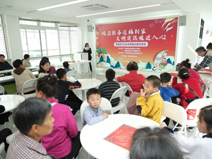 活动现场年味浓郁、氛围温馨。正值寒假,不少家长带着孩子一同走进新时代文明实践中心,在轻松有序的环境中参与文明实践活动。中国结装饰、新春主题布置营造出喜庆祥和的节日氛围,让文明实践中心成为群众寒假期间的“文化客厅”和“实践课堂”。
